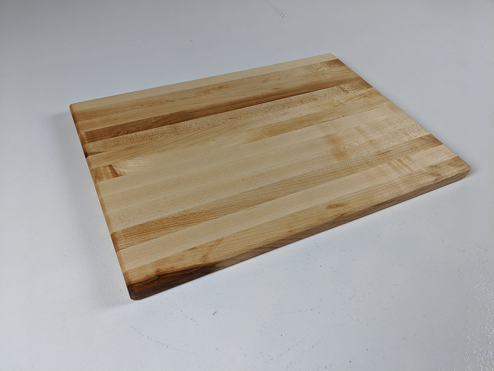 My standard cutting boards are typically made of a single species of wood, either maple, cherry, or walnut. These boards come in both end grain and edge grain construction, as well as a variety of sizes.
